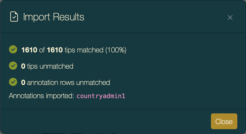 | 6 | Imported metadata and coloured tips | country (from CSV) |
