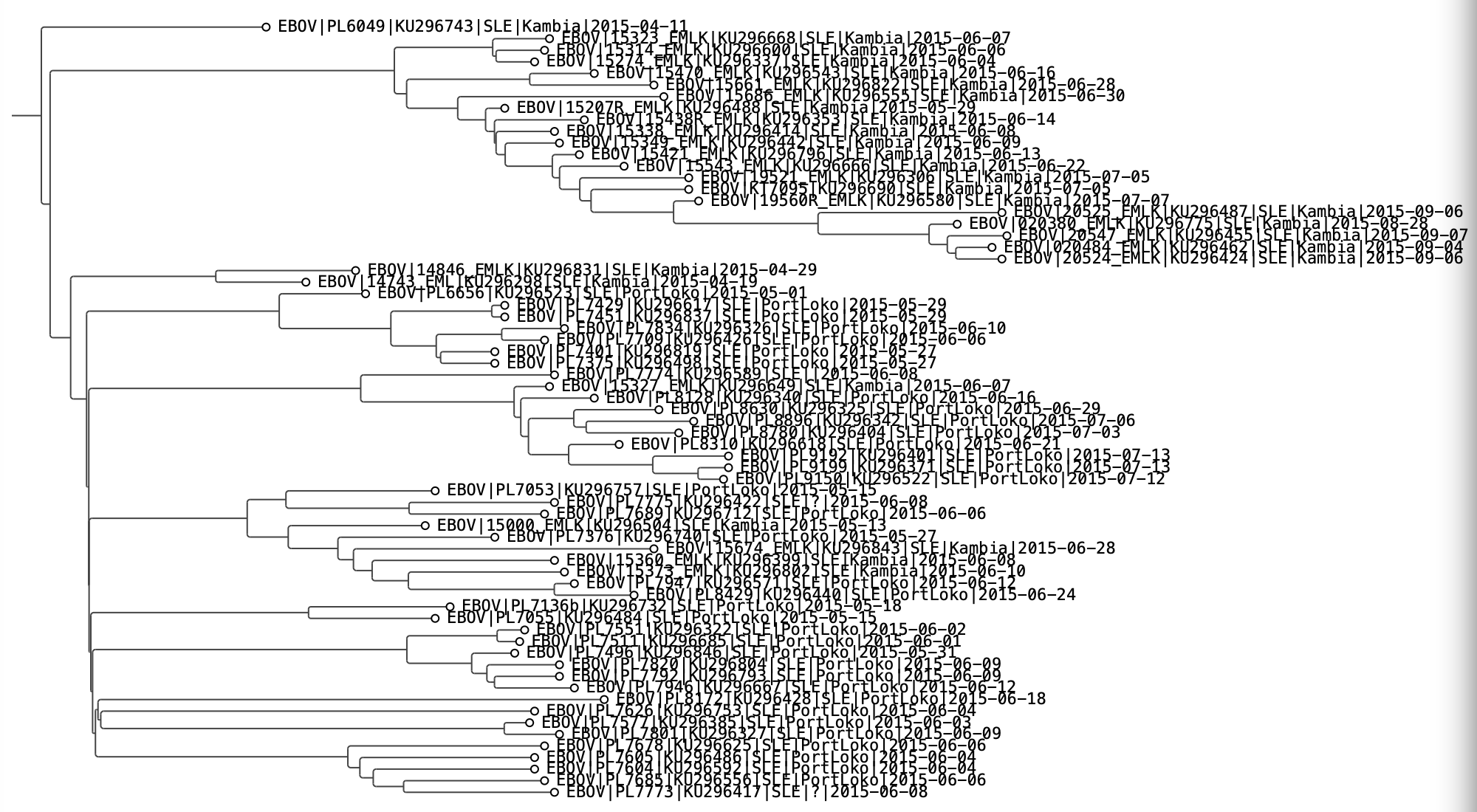 EBOV tree after ordering branches with larger clades toward the bottom.